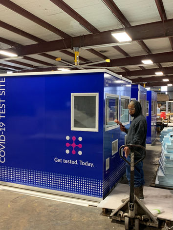 When the Covid-19 pandemic crisis hit North Texas, GST Manufacturing sprang into action. We helped fabricate emergency ventilator components as well as providing our local medical industry clients provide the care that was most needed. One of our larger projects included custom-built Covid-19 testing units. Created as stand-alone quick deploy modules, they provided the perfect solution for rapid testing large groups of people while maintaining social distancing and safety.